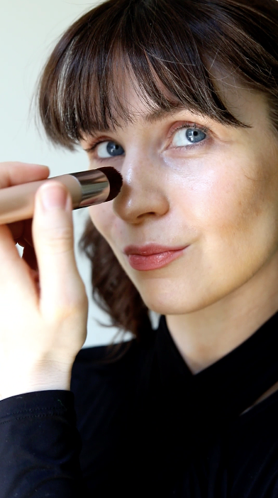 1. After applying your makeup with a wider brush, use your Slimline Kabuki Brush around your hairline, eyes, nose, and mouth to achieve a photo-ready finish